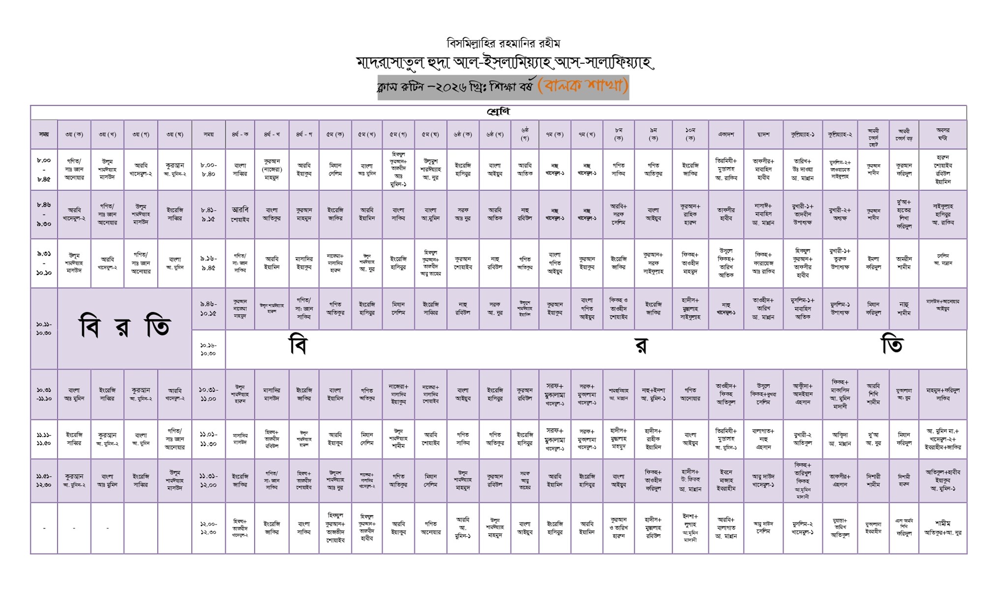 ক্লাস রুটিন