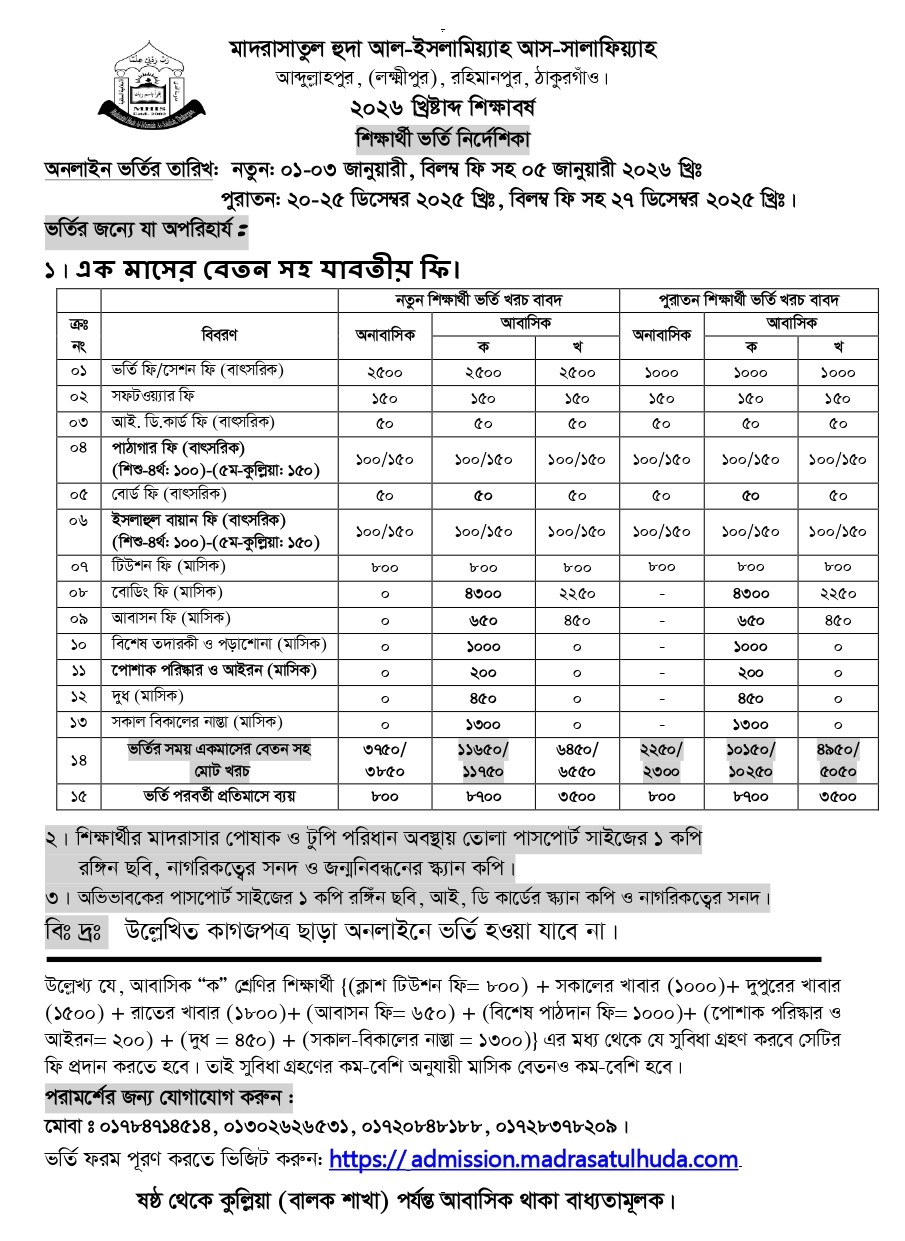 ভর্তি সংক্রান্ত যাবতীয় ফি