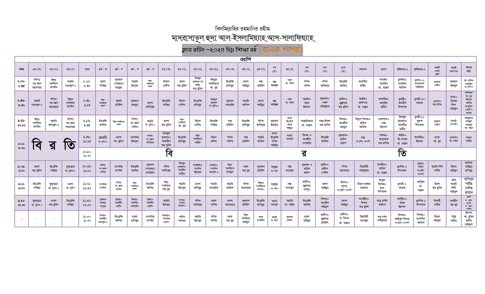 ক্লাস রুটিন