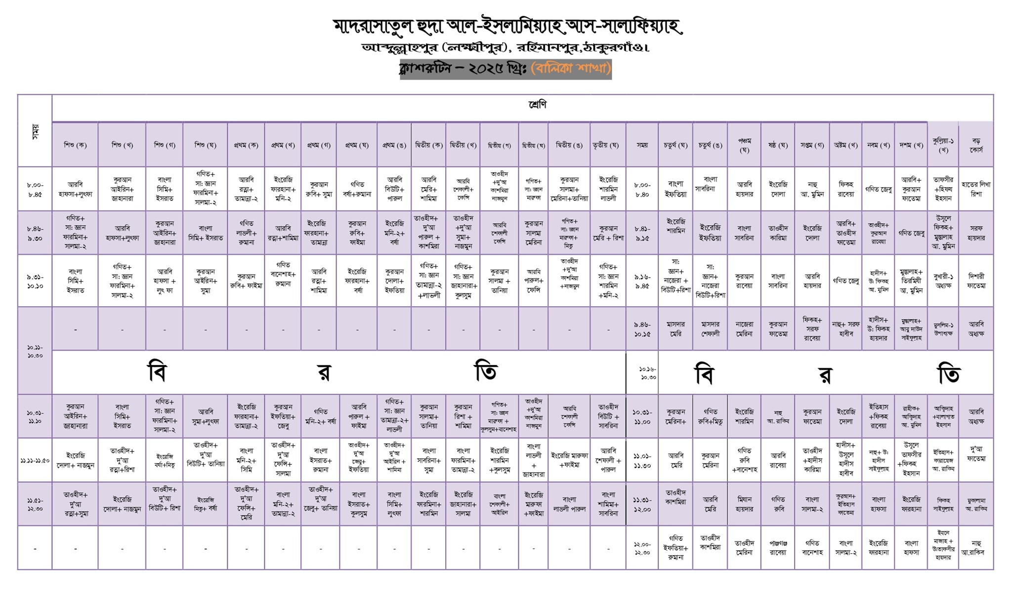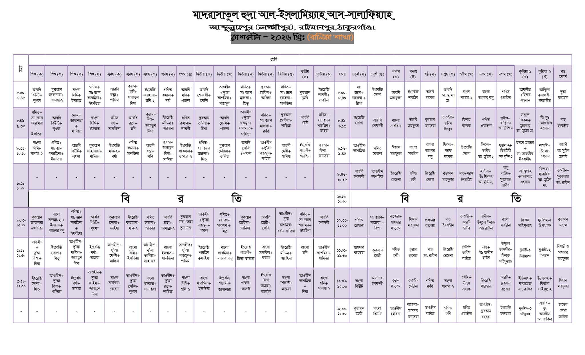 একাডেমিক ক্যালেন্ডার & ছুটি